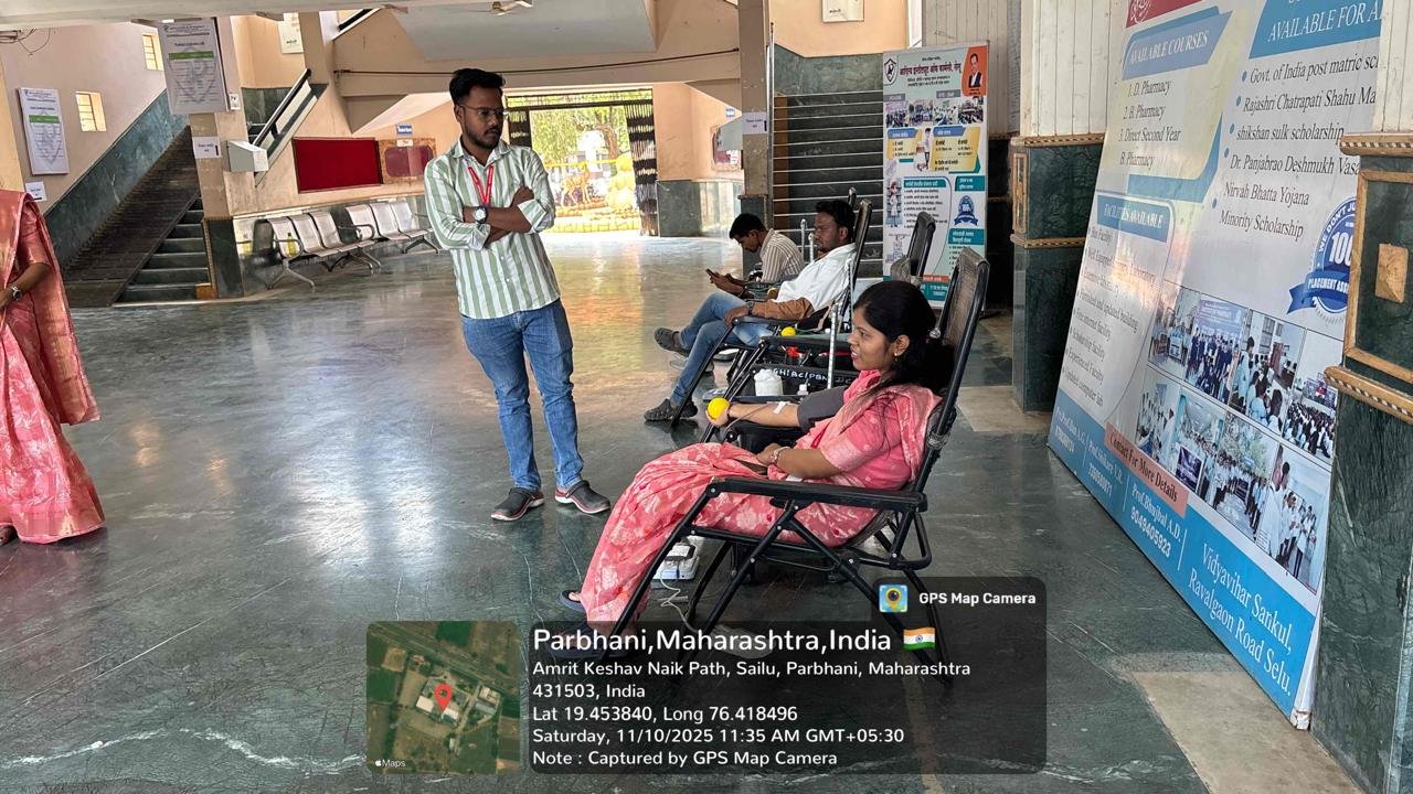 श्रीराम प्रतिष्ठान संचालित डॉ.राम रोडगे अध्यापक महाविद्यालय सेलू येथे रक्तदान शिबीराचे आयोजन करण्यात आले