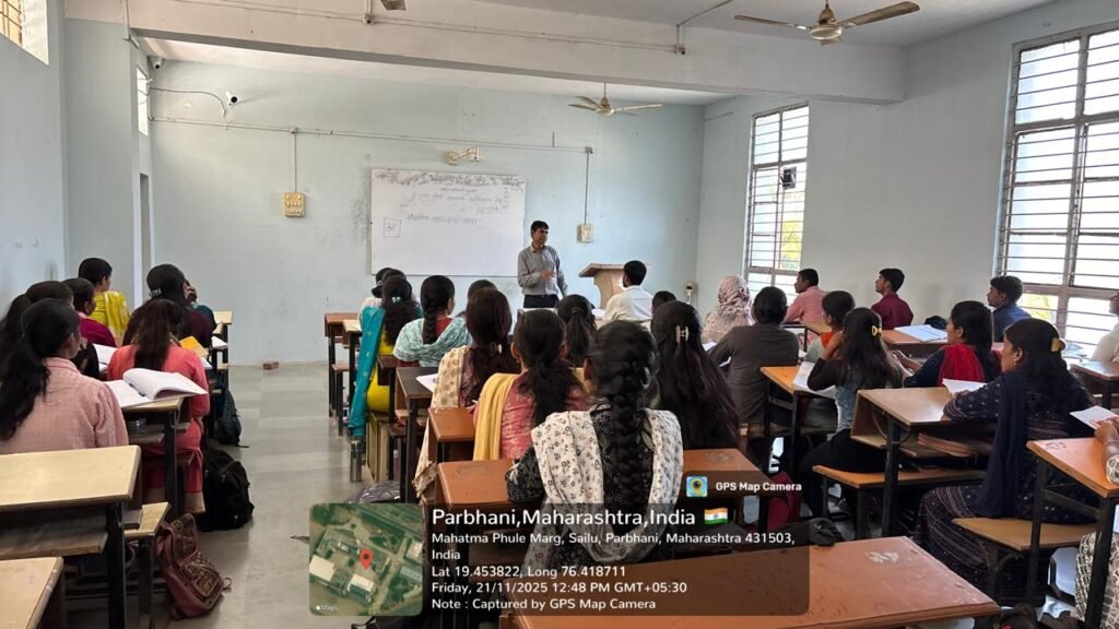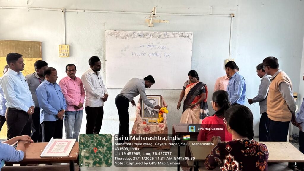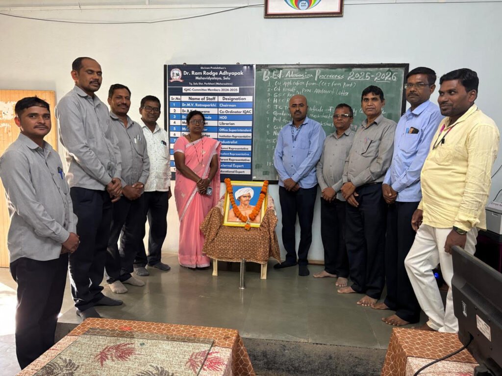 डॉ राम रोडगे अध्यापक महाविद्यालय,सेलू येथे दि:- 26 नोव्हेंबर 2025 रोजी भारतीय संविधान दिनांनिमित्त डॉ बाबासाहेब आंबेडकर यांच्या प्रतिमेचे पूजन करून संविधानाच्या प्रस्ताविकाचे वाचन करून संविधान दिन साजरा करण्यात आला.